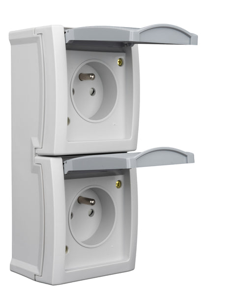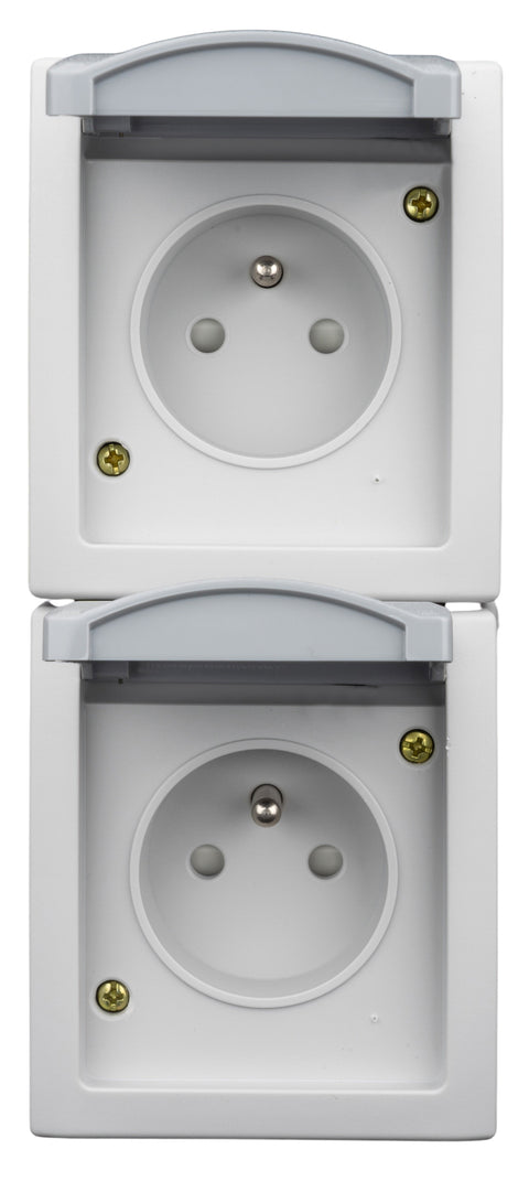 | DESCRIERE2 | Vertical combination 2 fold socket with earthed pin socket and child protection |