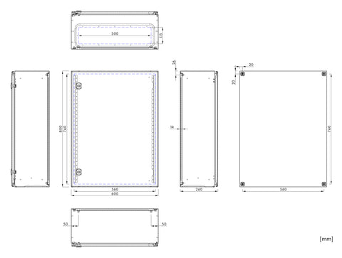 | HxBxT mm | 800x600x260 |